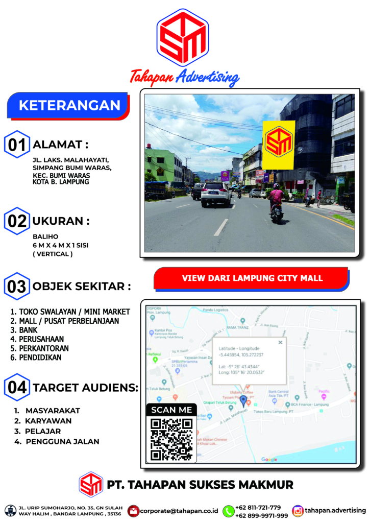 • Address JL. LAKS. MALAHAYATI, SIMPANG BUMI WARAS, TELUK BETUNG UTARA, KOTA BANDAR LAMPUNG